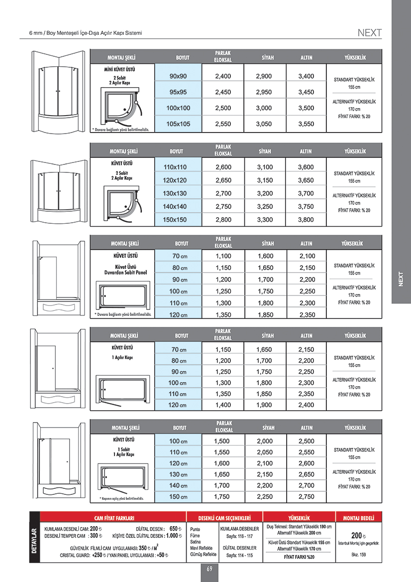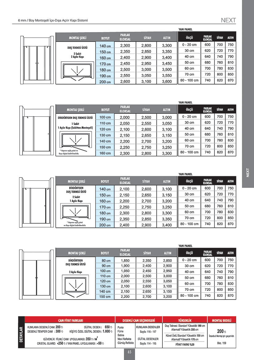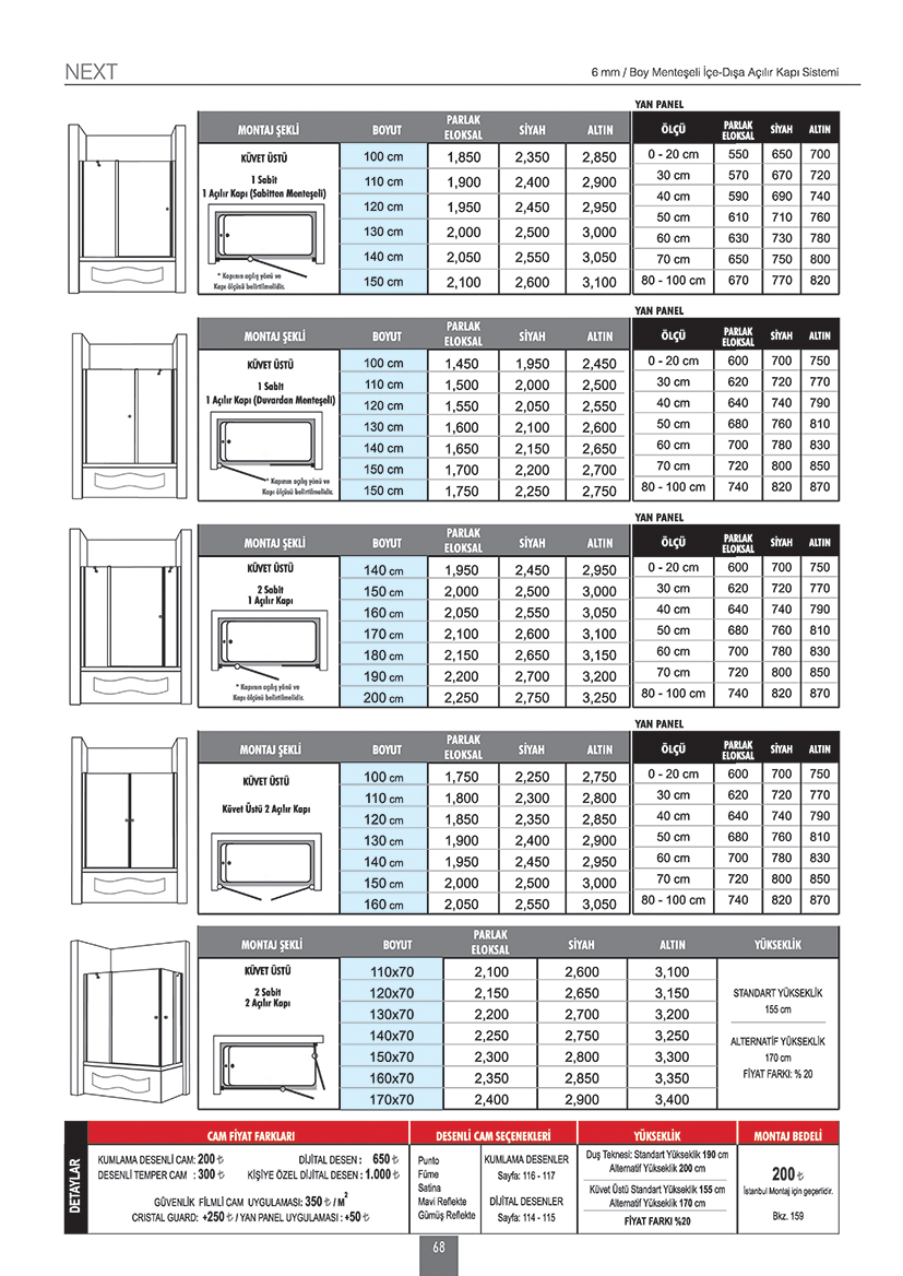 6 mm / Boy Menteşeli İçe-Dışa Açılır Kapı Sistemi